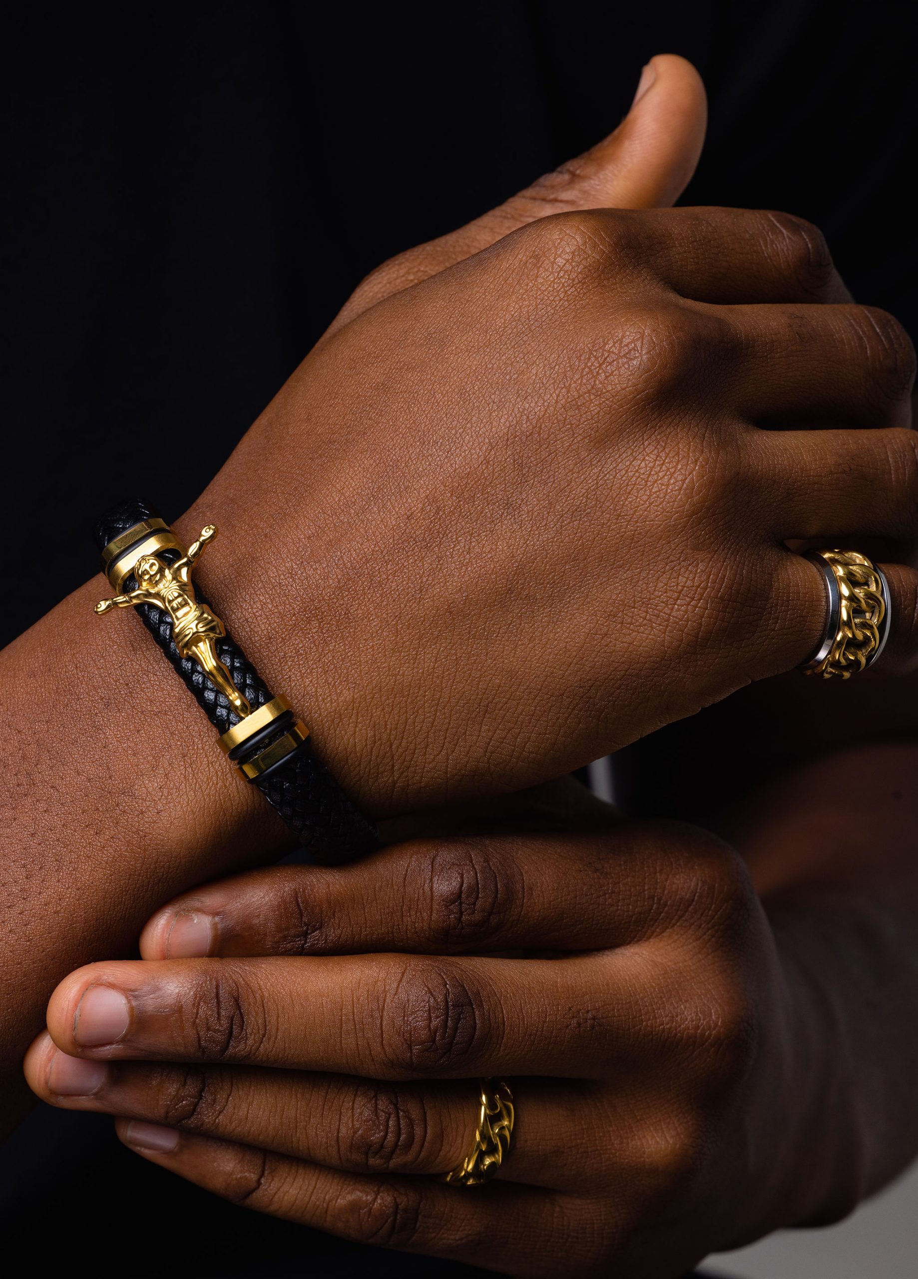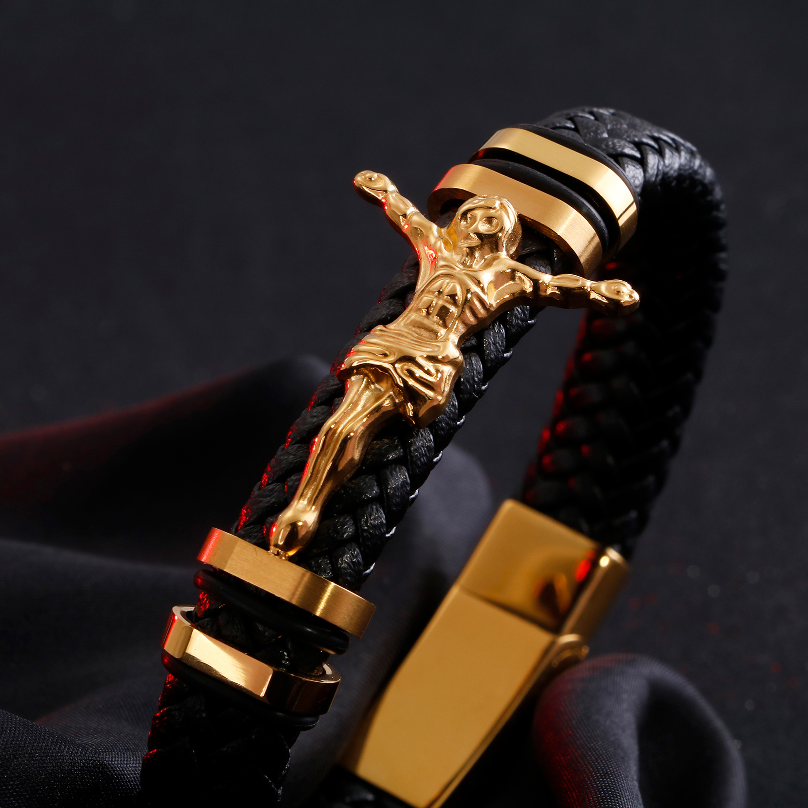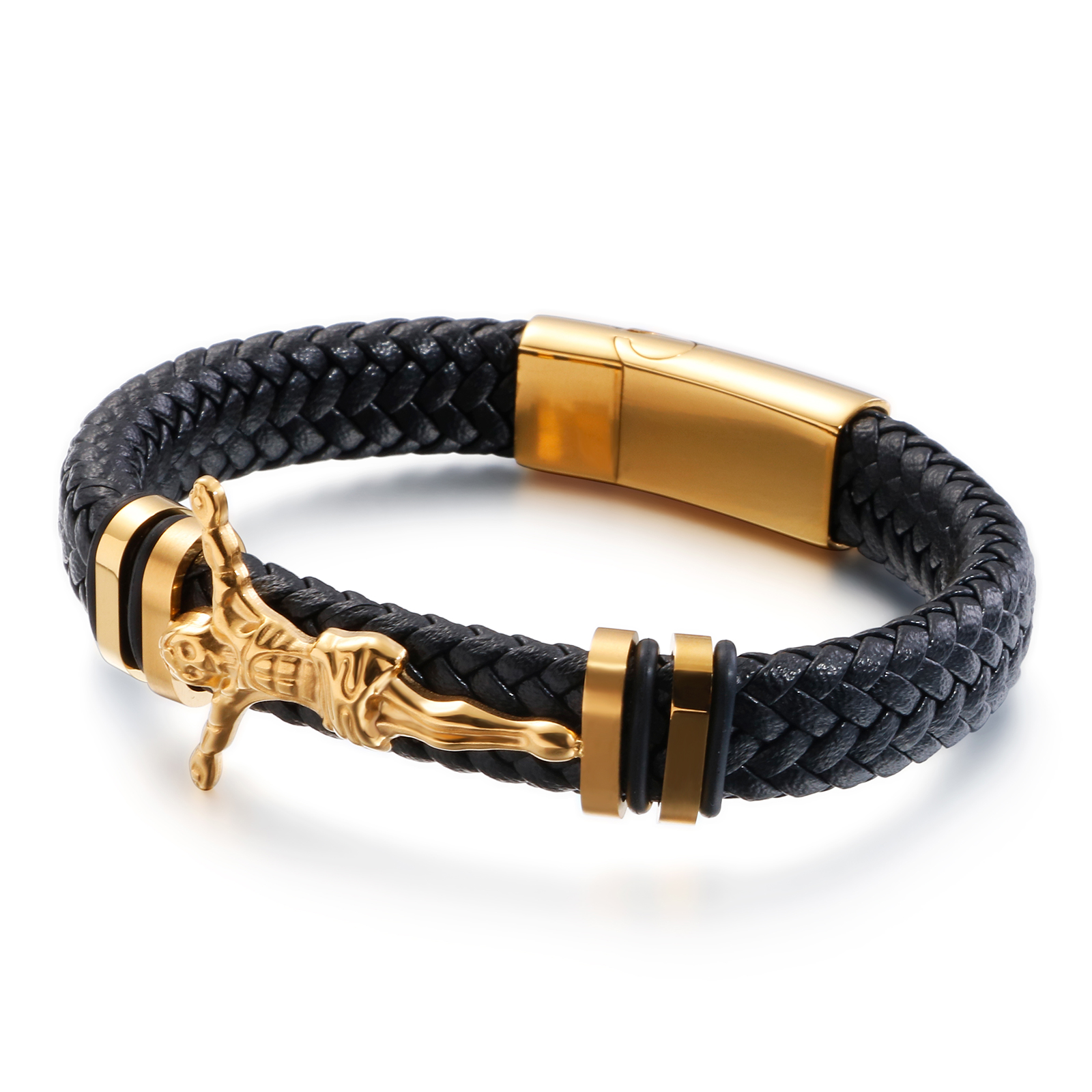 New Trendy Cross Leather Bracelet Men Magnetic Buckle Punk Multi Layer Leather Bracelet For Men