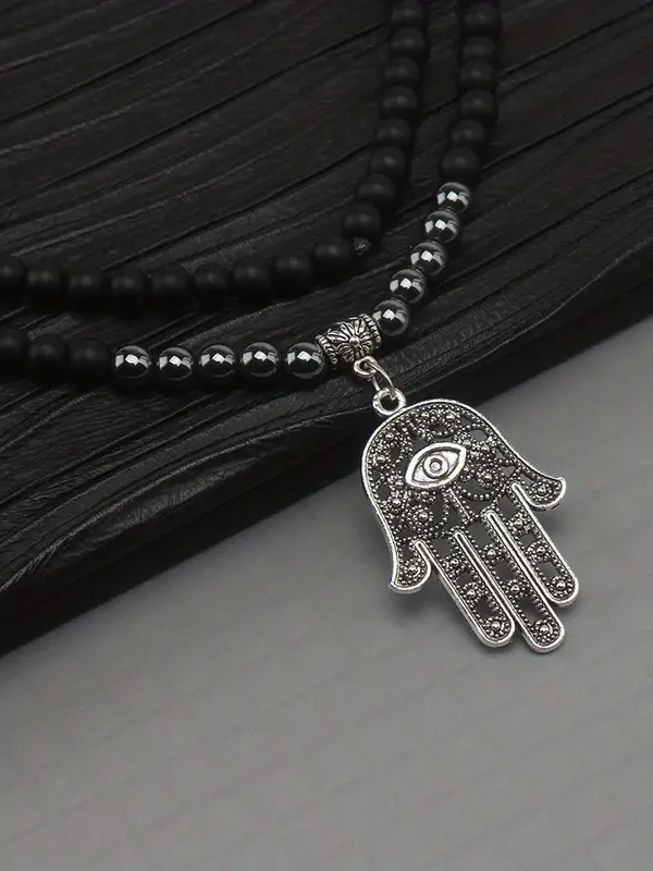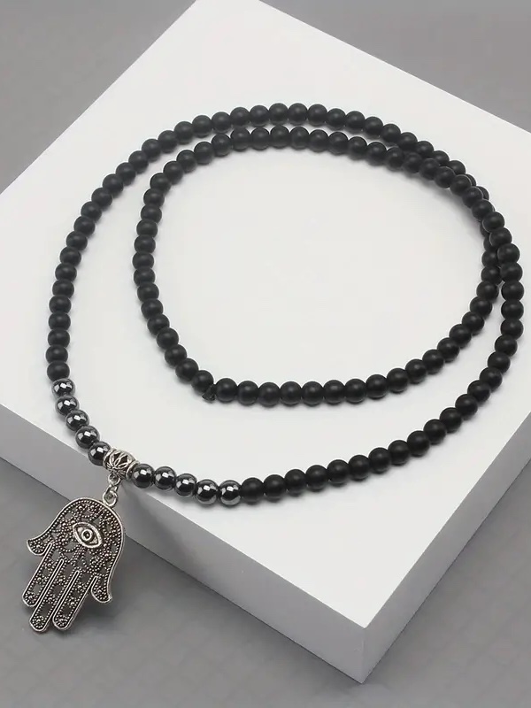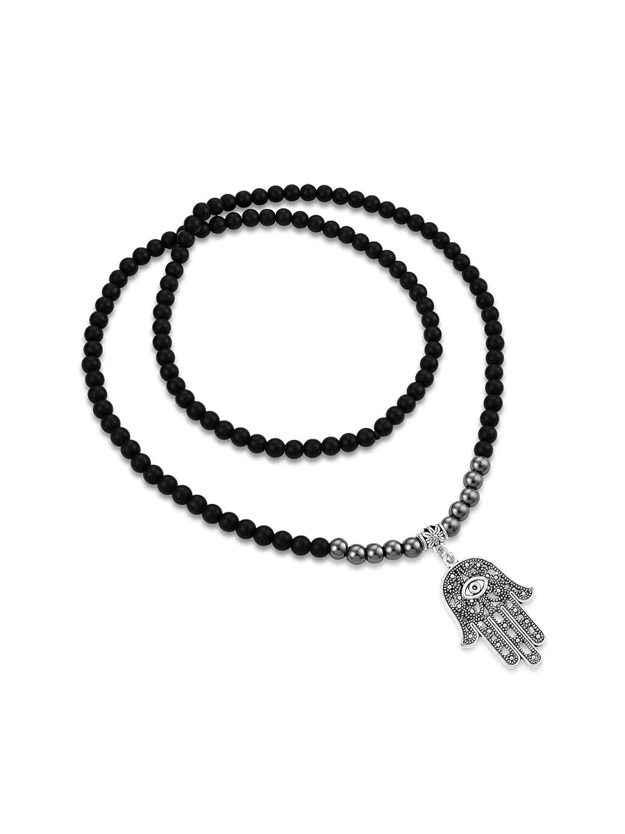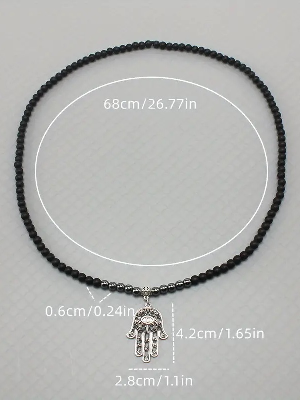 - Material: 6mm Black Obsidian; Stainless steel Charm. The circumference of the beaded necklace: 28″(70cm)